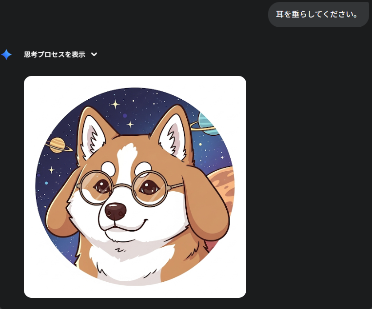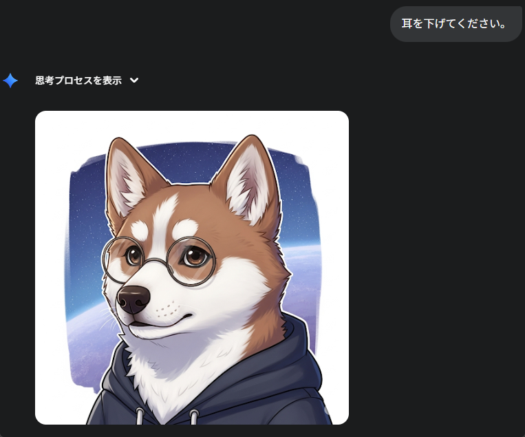 「じゃあ、耳を3分の2にして」→全く違う画像が生成されてしまう。